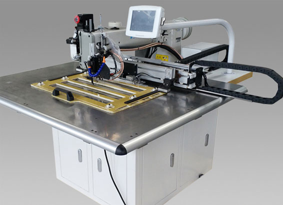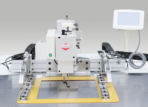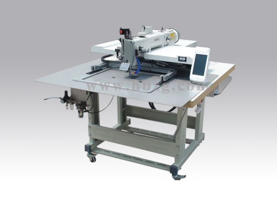 本機設計結(jié)構(gòu)嚴謹、傳動可靠,通過隨機編程器能進行花樣圖形、針數(shù)、線跡長度等各種參數(shù)的設定?;拥妮斎?、儲存、修改、調(diào)用便捷,并可以通過USB接口輸入預先編好程序的各種圖形進行縫紉加工。是一款專門用于縫制皮革、吊裝帶等厚料物品的大規(guī)模電子花樣機。
